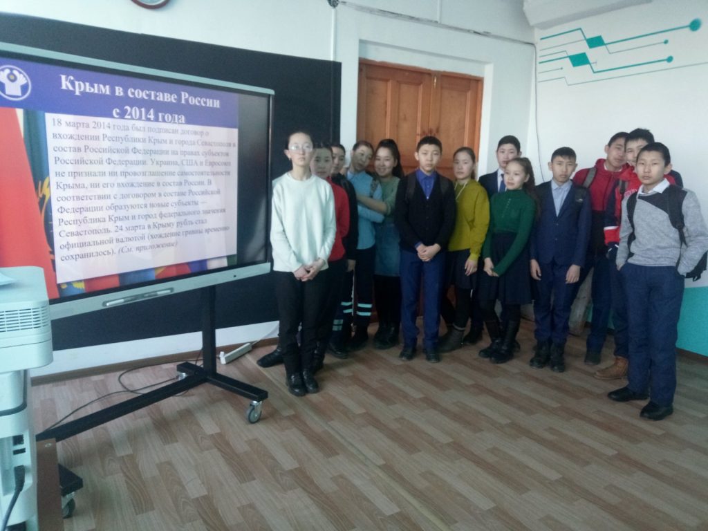 Сегодня были проведены классные часы для 1 по 11 классов, посвященные воссоединению Крыма с Россией.