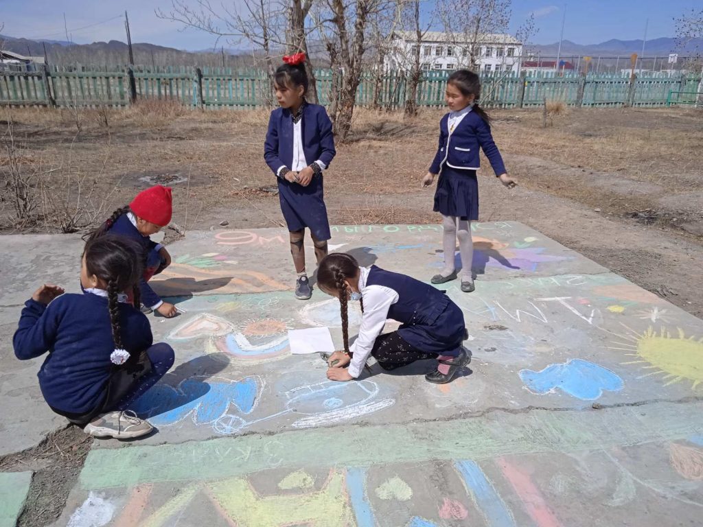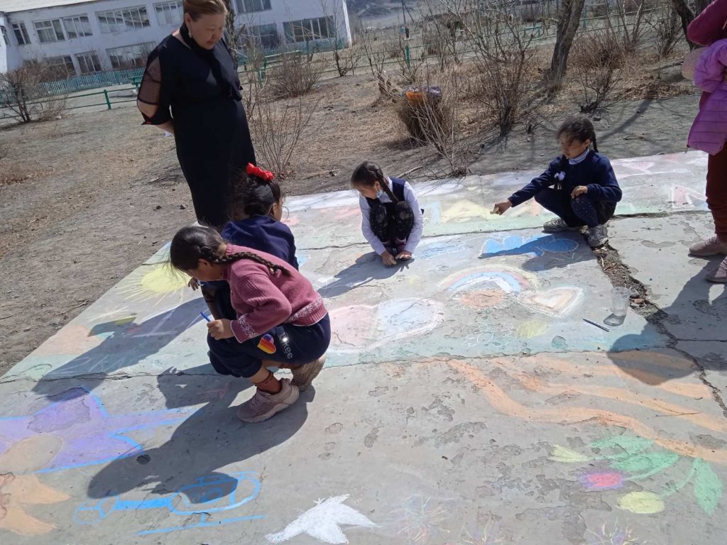 Без рубрики Рисунки на асфальте 30.04.2021 / Рисунки на асфальте в МБОУ СОШ с. Шекпээр по теме » Цветущий май» «День победы»